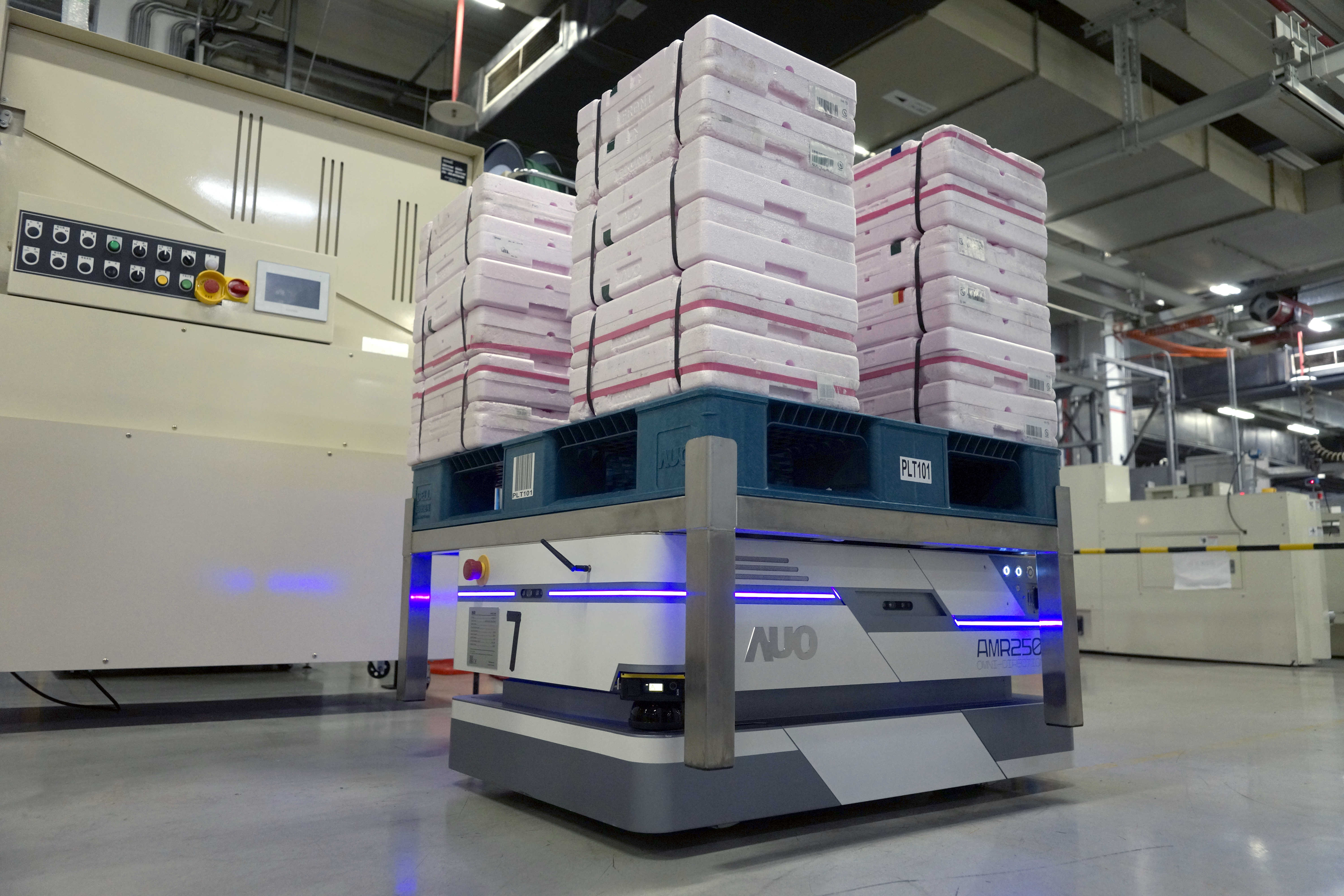 米兰·(milantiyu)运用数字孪生系统,结合AMR无人搬运车进行派送,达成低库存高效率的智能化仓储物流管理。