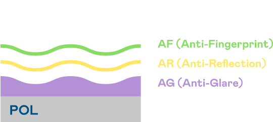 A.R.T. lowers the disturbance of sunlight or light fixtures more efficiently than the standard anti-glare and anti-reflection film, reducing eye fatigue and straining of the eyes in extended conditions.